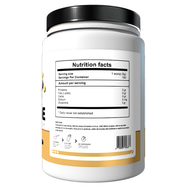 Glutamine acelera la recuperación muscular desde la primera dosis. Su fórmula de L-glutamina pura, desarrollada en laboratorios estadounidenses por científicos especializados, favorece la regeneración, refuerza las defensas y protege la salud intestinal bajo esfuerzo físico. Pensado para atletas que entrenan con intensidad y exigen resultados medibles, este suplemento ofrece apoyo integral sin aditivos. Glutamine actúa con precisión donde el cuerpo lo necesita, mejora la respuesta del organismo y permite sostener el rendimiento sin comprometer la salud. Es una solución técnica, confiable y efectiva para deportistas que viven el entrenamiento como disciplina y buscan avanzar con evidencia y resultados.
